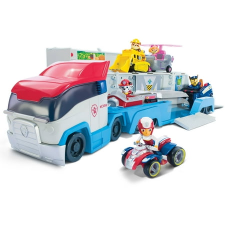 The Paw Patroller is the ultimate rescue vehicle and can transport three Paw Patrol vehicles inside, or display six vehicles when opened up!