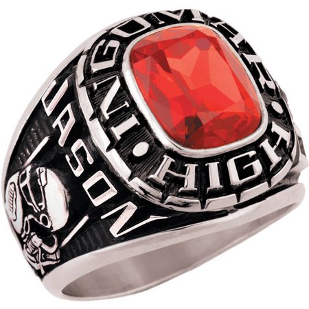 - Personalize with name, mascot name, school color shield, choice of simulated gemstone color, a name, choice of activity side panel and graduation year