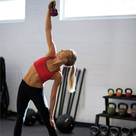SPRI Vinyl Kettlebells, Teal 20 LBUse in a variety of exercises including squats, throws, cleans, jerks, snatches and rotational swingsComfort grip Non-slip handlesThe vinyl coating around the iron bells will prevent floor damage