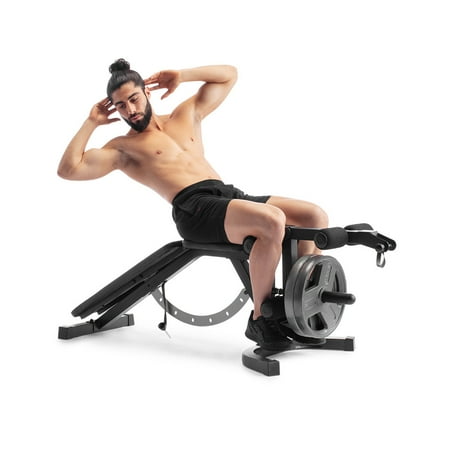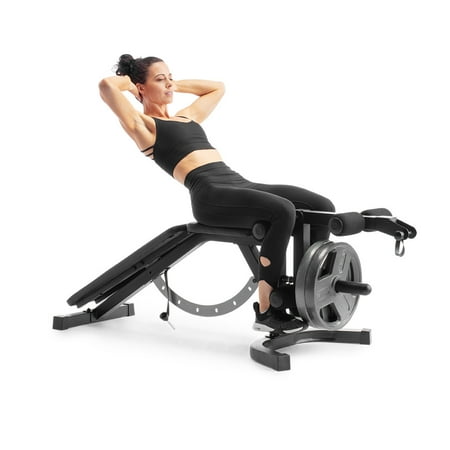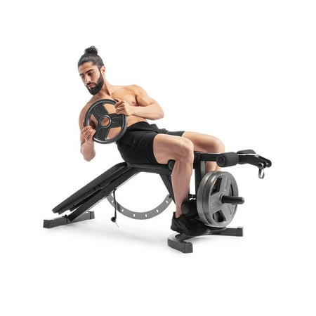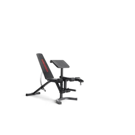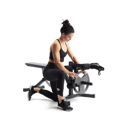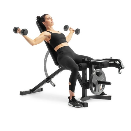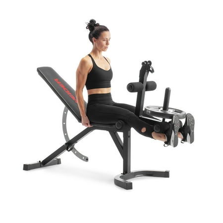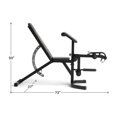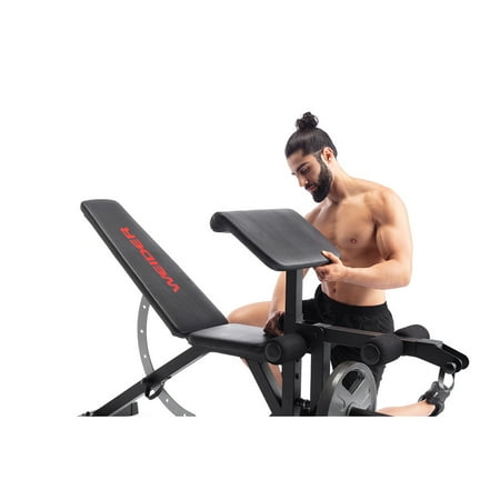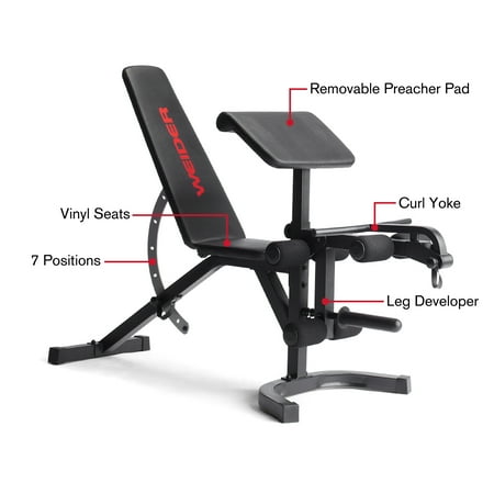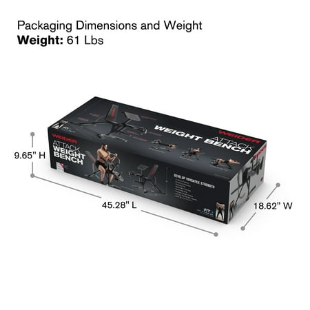 Multiple Bench Positions Adjust your bench between multiple levels of incline and decline, or perform exercises in a traditional flat position for a comprehensive home workout Train your entire body with this versatile piece of equipment Integrated Leg Developer Don’t neglect your lower body - use your own standard or Olympic-sized weight plates to train your quads, hamstrings, hip flexors, and core with a range of strength-building exercises Removable Preacher Curl Pad Isolate your biceps for more effective training with this integrated preacher curl pad Easily remove the preacher curl pad when not in use to make room for other exercises Removable Curl Yoke Attachment Use this curl yoke with the integrated preacher curl attachment to strengthen your biceps and shoulders Easily remove the curl yoke when not in use to make room for other exercises Sewn Vinyl Seats Tear-resistant vinyl is durable and easy to wipe clean after each intense workout Olympic Sleeve Adaptor This feature allows the Attack Olympic bench to be compatible with both 1” standard-sized weight plates and 2” Olympic-sized weight plates, which are sold separately Exercise Chart Included Guide your workout routine with a professionally-designed chart that outlines effective exercises and illustrates proper lifting form 610 Lb. Total Weight Capacity Weight Plates Sold Separately 90-Day Parts & Labor Warranty Visit www.iconservice.com for more warranty information Footprint: 41" H x 24.5" W x 70" L Model #: WEBE29620
