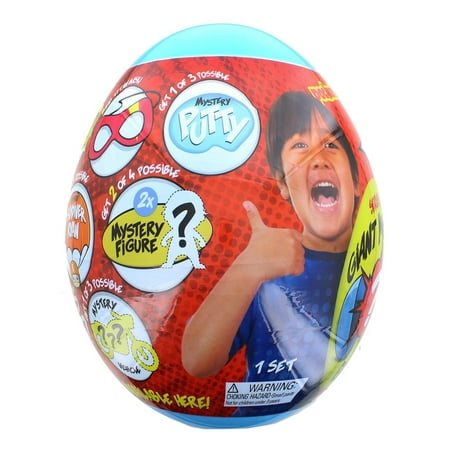 Giant egg is filled with surprises, including an exclusive pull-back vehicle, ultra rare figures, a new sky diver Ryan with a working parachute, special putty,limited edition squishy, and a Red Titan mask!